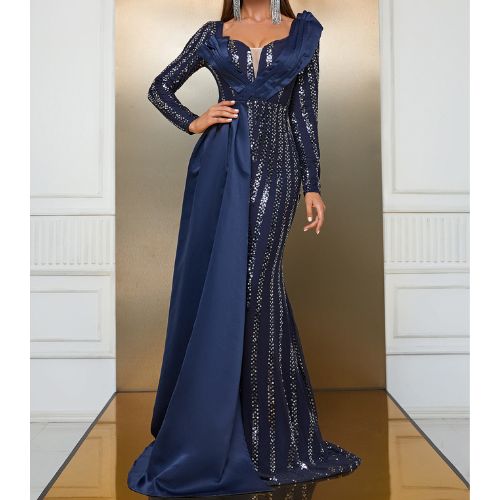 スパンコールステッチ長袖パーティードレス