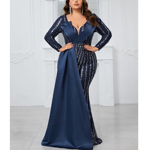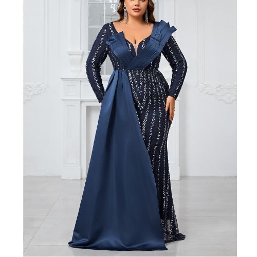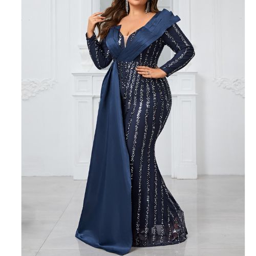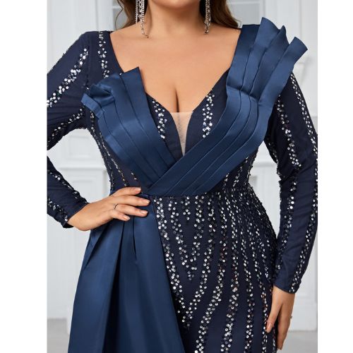 スパンコールステッチ長袖パーティードレス