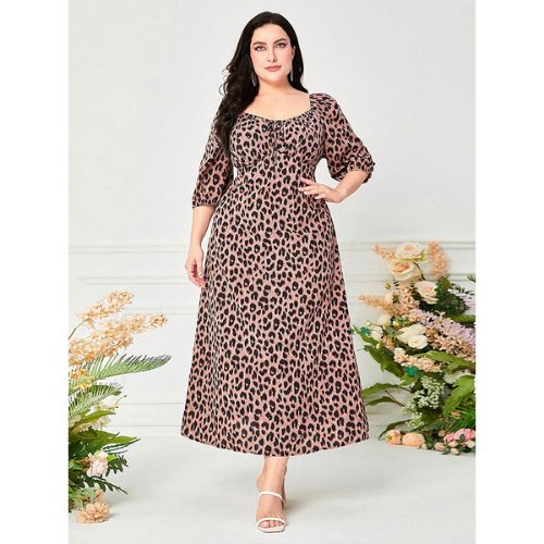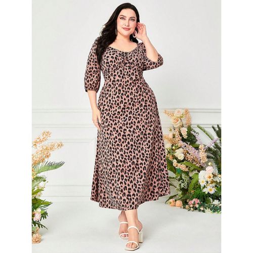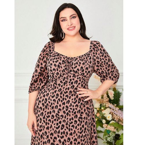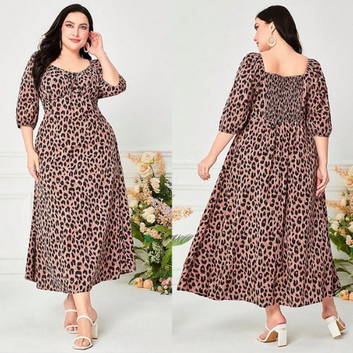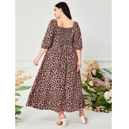 セクシーなヒョウ柄 A ライン半袖イブニングドレス