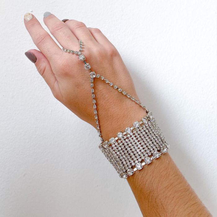 【即納】ラインストーンフィンガーブレスレットD20115