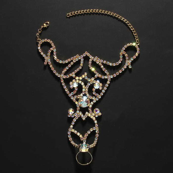 【即納】ラインストーンフィンガーブレスレットD20119