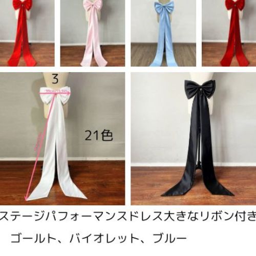 ステージパフォーマンスサテンドレス大きなリボン付き